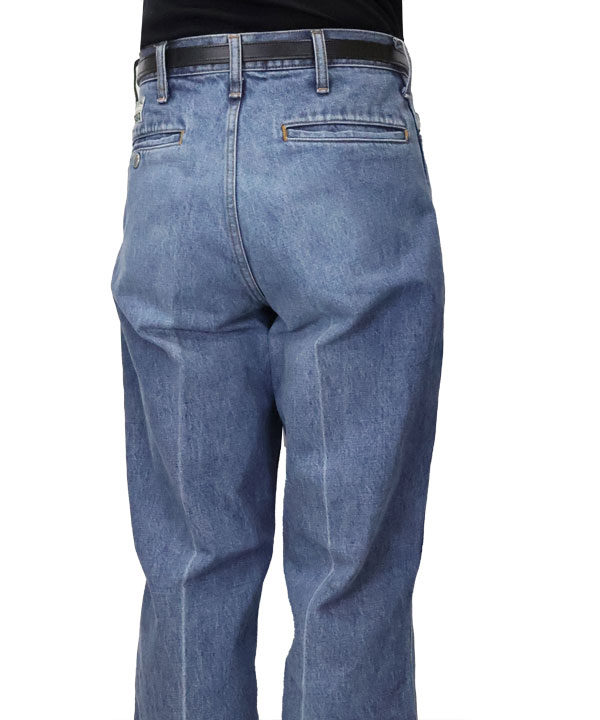 14ozデニム 5P フリスコ(センタープリーツ加工)14オンスデニム生地を使用するLポケ5ポケットのフリスコデニム。フレアシルエットで加工も施され、センタープリーツ加工のラインが入ります。カラー:インディゴ加工