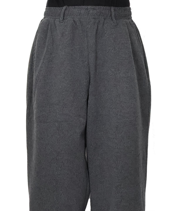 ストレッチ イジーパンツポリエステル×レーヨン×ポリウレタンの快適イージーパンツです。ジャガードにて細かな柄と、程よい肉感そして伸縮性ある生地は超楽チンの一本。ぜひお試しください。カラー:チャコールグレー