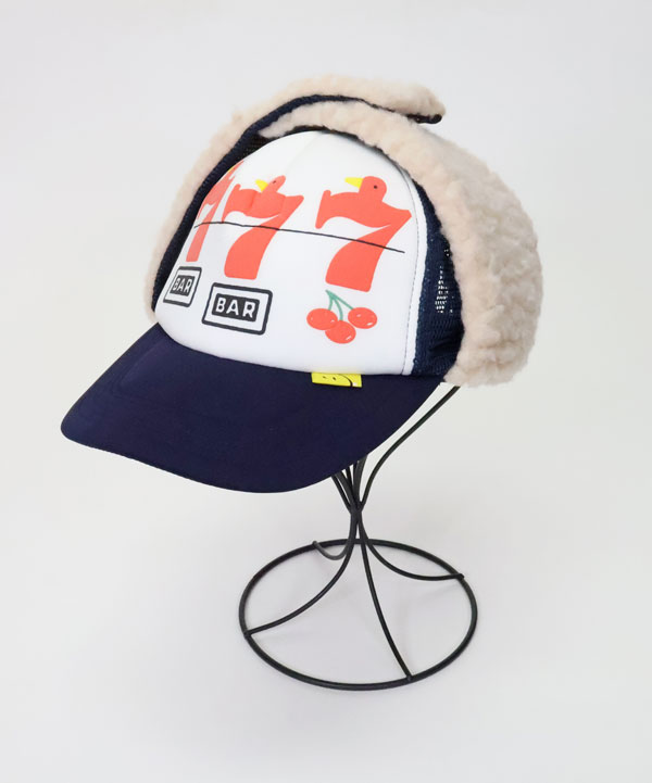 ラッキーバード ランバートラックCAPフロントに発泡プリントを施したトラックCAP。内側の縁がパイル地になっています。そしてボア耳当て付きデザイン!お楽しみください。ホワイト×ネイビーワンサイズ展開