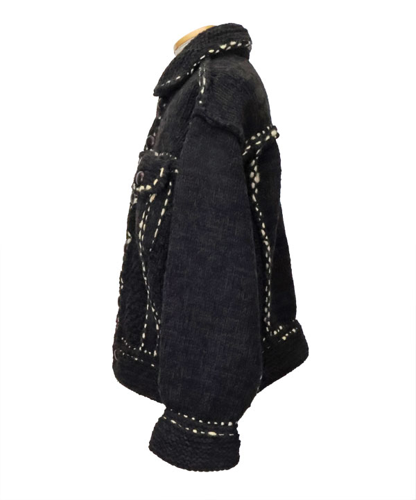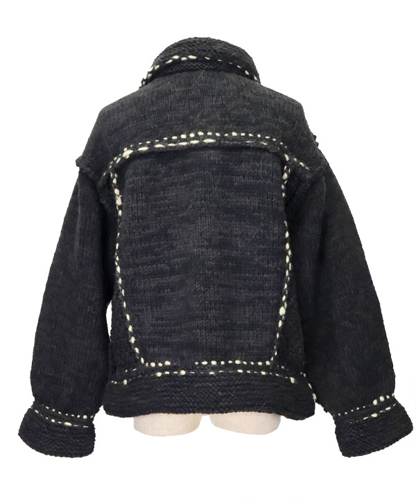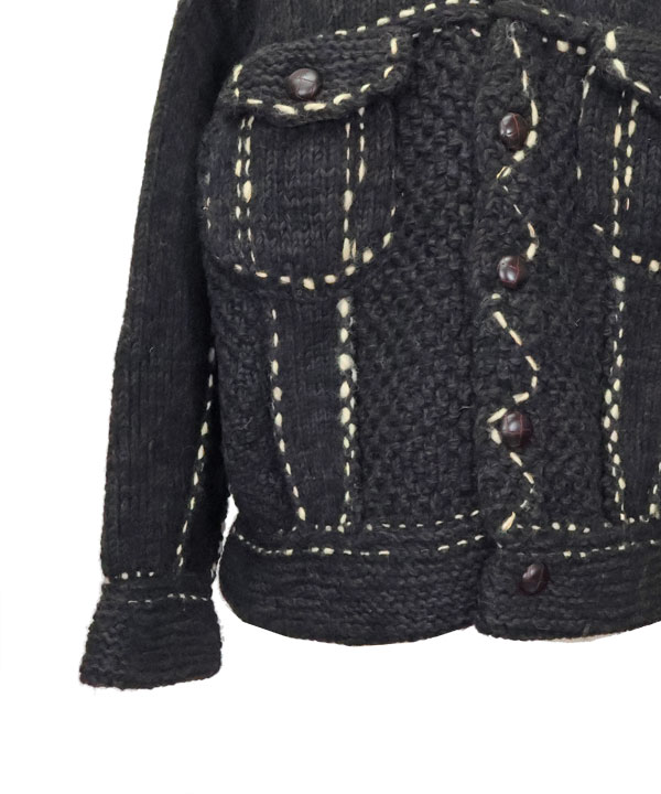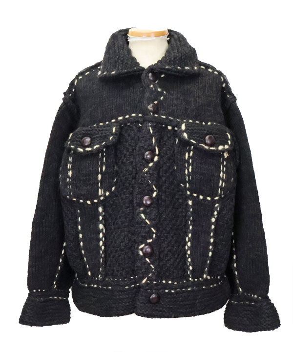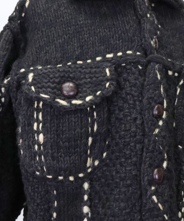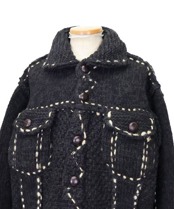 ウールハンドニット カウチンGジャンハンドニットで仕立てた重厚感のあるGジャンデザインのカウチン。切り替えやステッチなどGジャン特有のディティールを取り入れました。ざっくりと編み上げ、ゆとりのあるサイジングのニットアウターです。カラー:ブラック