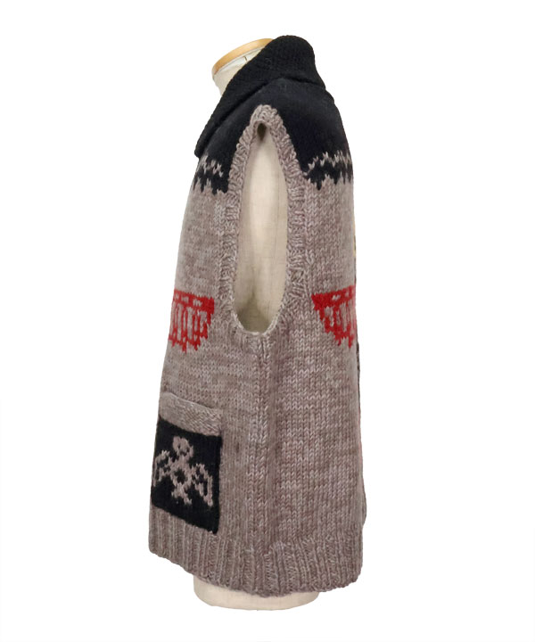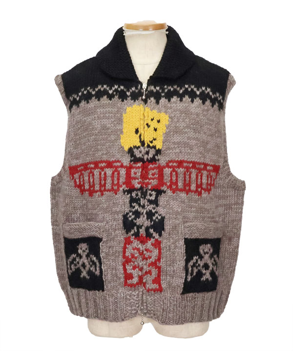 ハンドニット PECKISHトーテムポール ZIPベストハンドニット特有の素朴さ、温かさを感じられるベストです。フロントと背中には、クッキーになったRAINBOWYとトーテムポールをデザイン。ざっくり着ていただけるおすすめの一枚です。カラー:ブラウンベージュ1サイズ・3サイズ展開のアイテム