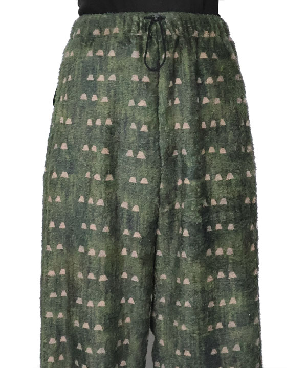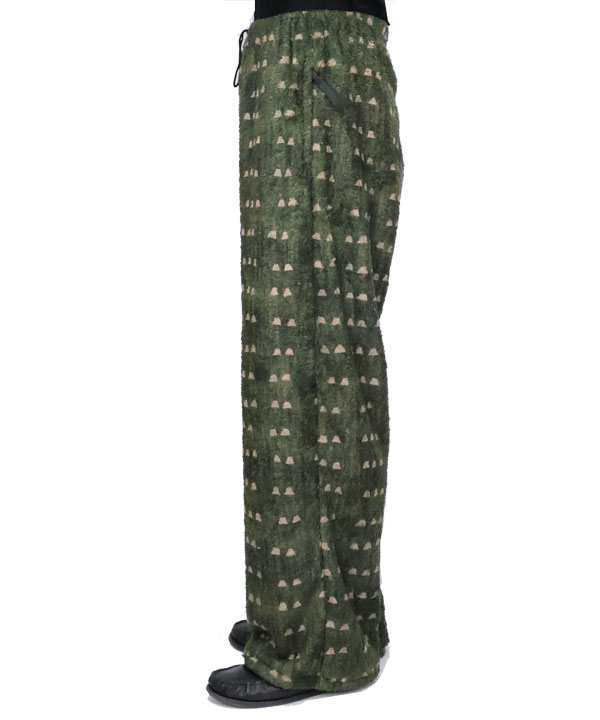 江戸時代から続く老舗染物屋"竺仙"の代表的な柄で、爪の形を模した菖蒲の模様を落とし込んだフリースパンツです。