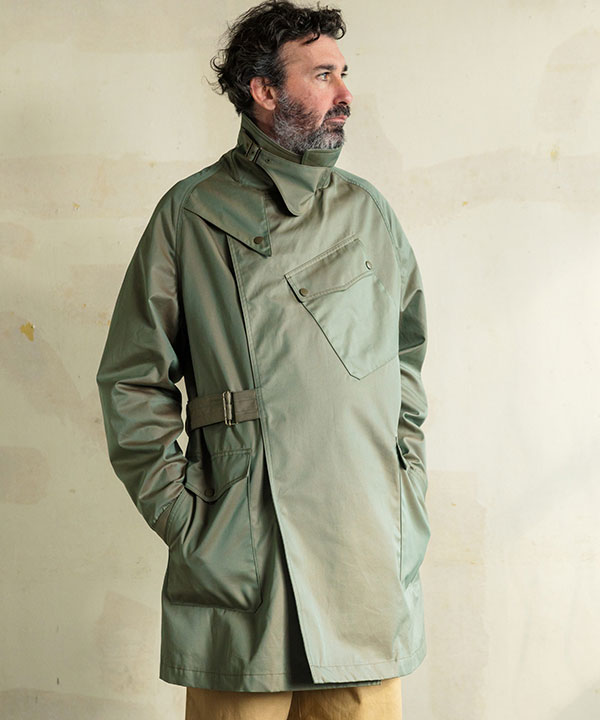 ブリティッシュアーミーのデスパッチモーターサイクルコートをモチーフに街着としてアレンジした3シーズン対応のショートコート。
