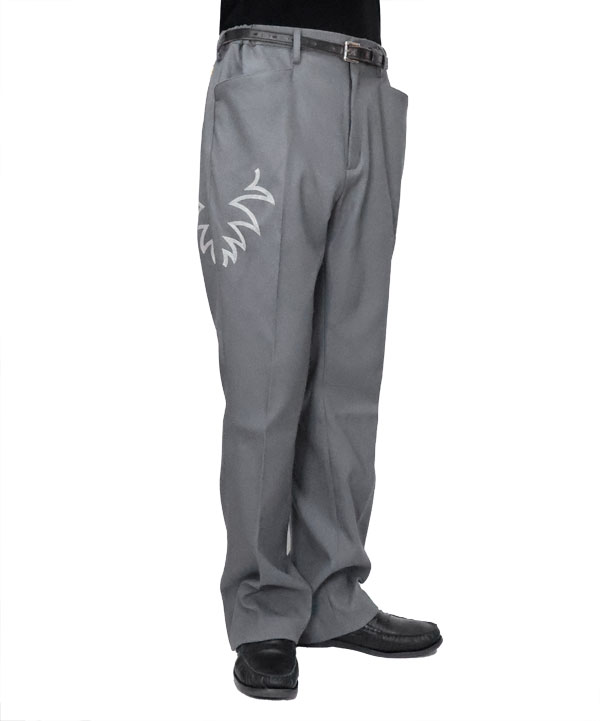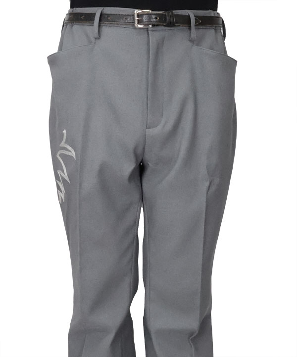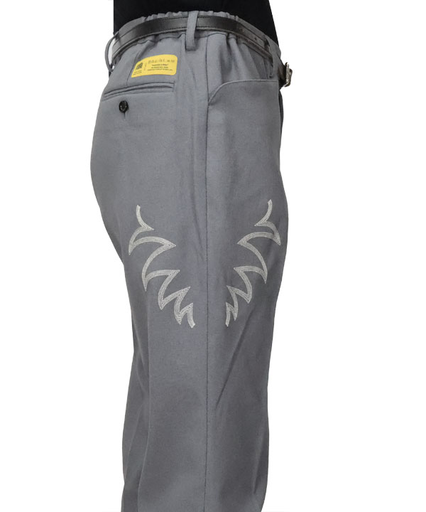 右腿には某ウエスタンブーツからインスピレーションを得た刺繍がギミックアリのインパクトある仕上がりとなっています。