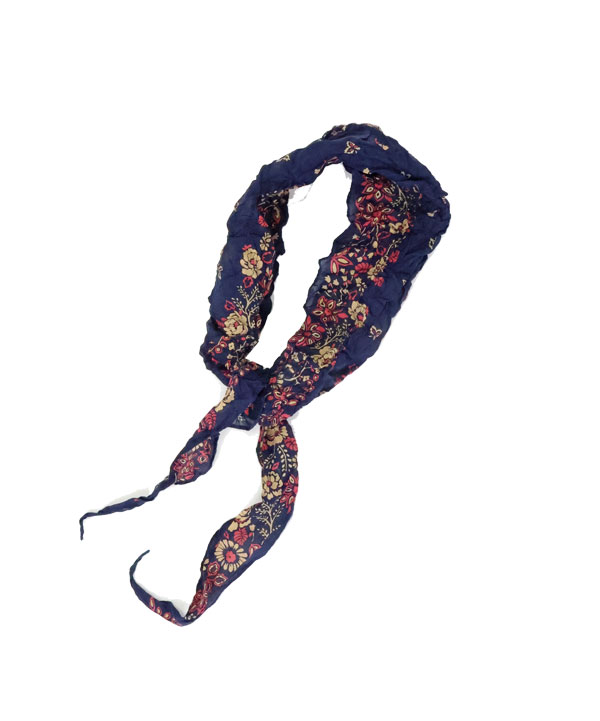 ワッシャーシルク ネッカチーフ(Churchill GARDEN)草花をモチーフにしたネッカチーフ。シルクをシワ加工しています。菱形になっており、細く丸めやすいため、ボリューム感を抑えてすっきりと首元を彩ることができます。首元のワンポイントにお使いください。ワンサイズ展開長さ:110㎝