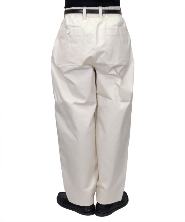 腰周りと腿部分にゆとりをもたせ膝から裾にかけテーパードを利かせた綺麗なシルエット。