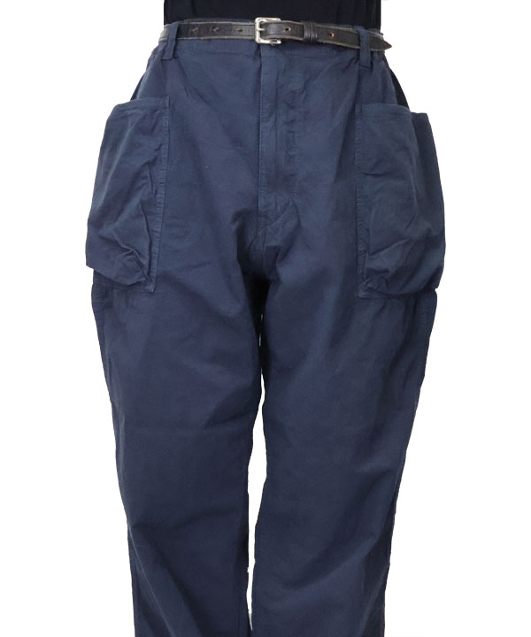 カタチはハイライズのヒップ・ワタリには程よいボリュームを持たせたテーパードシルエット。そして両サイドにはミリタリータイプのマチがある大きなパッチポケットが付属します。