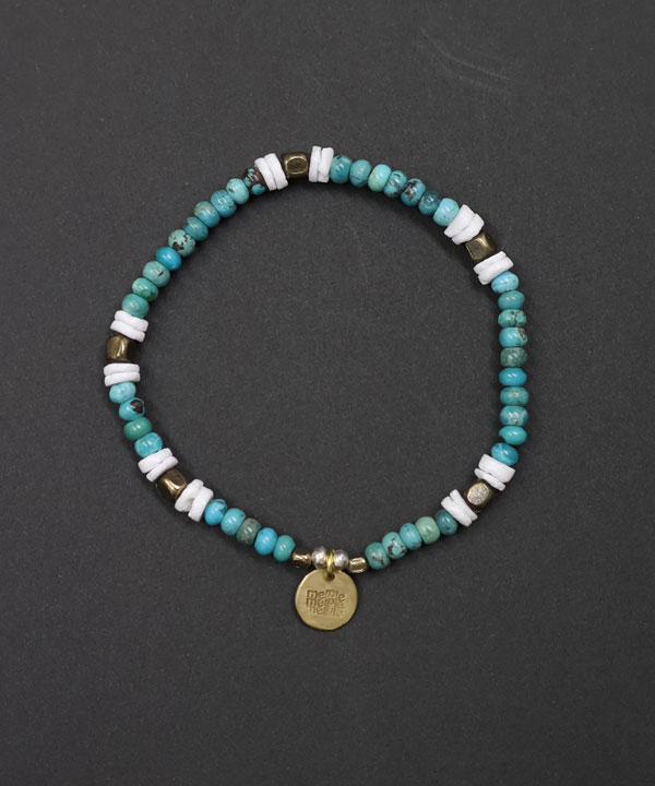 ビーズ ネックレス&アンクレット二重巻きでアンクレットとして、そして一重でネックレスとしても使える、自由度の高いデザインです。天然ターコイズが施された伸縮性あるゴム仕様の脱着が楽チンなアイテムです。melple刻印入りパーツも付属します。スタイリングに程よい個性を添えてくれるアクセサリーです。ワンサイズ展開カラー:ターコイズ素材:天然石・シルバー925・真鍮