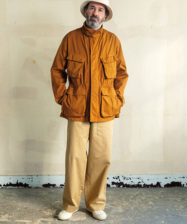 英仏米の3か国のミリタリーテイストを混ぜ合わせた、ゆったりとしたワイドシルエットが存在感のある一本です。