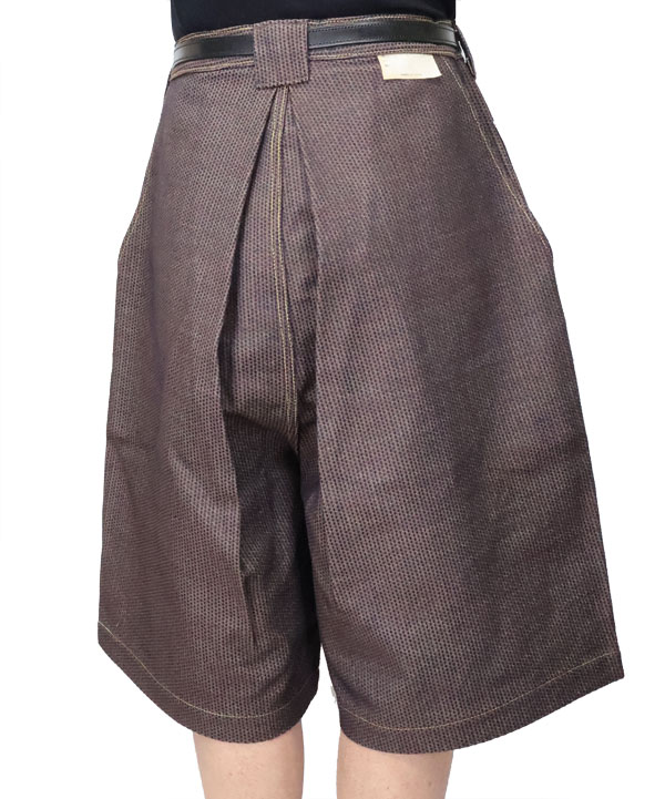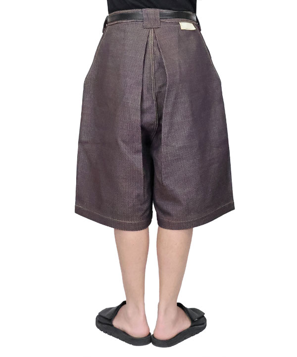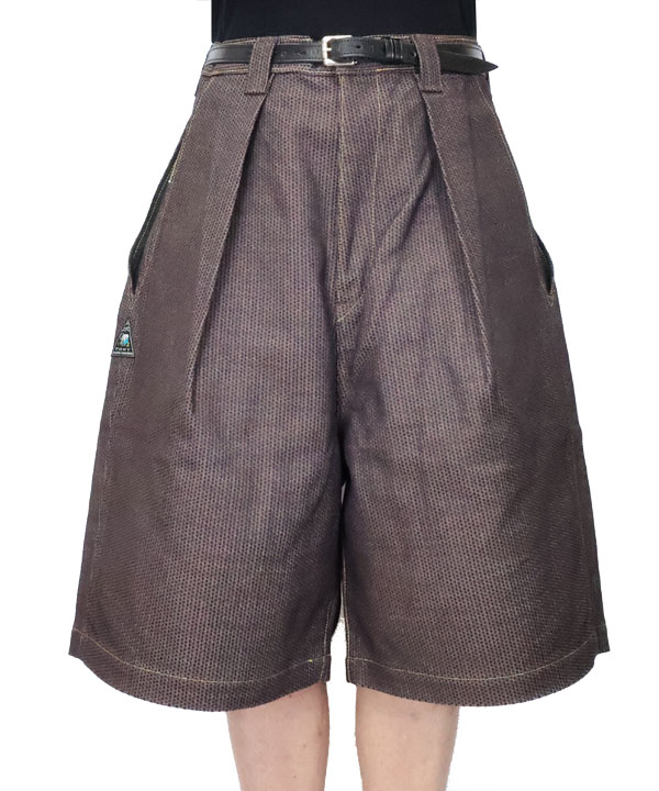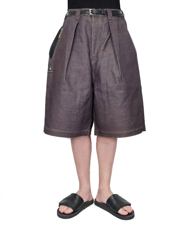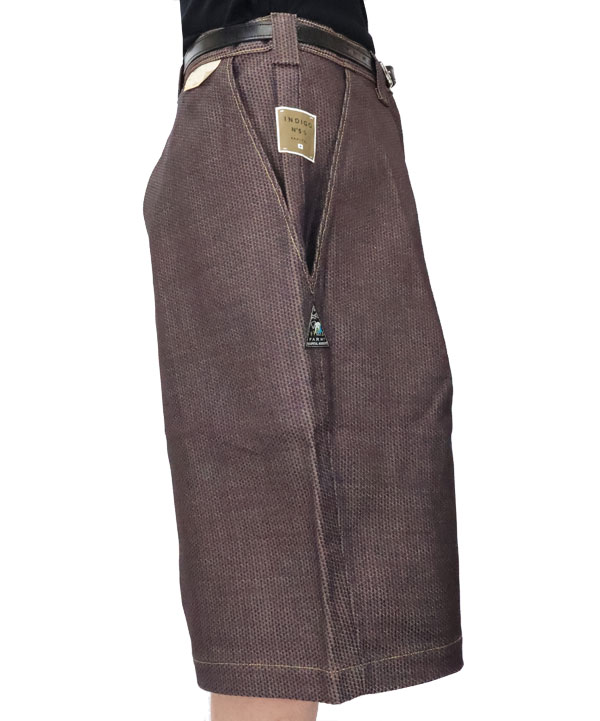 柿渋染めを施したNO.5の独特の深みのある刺し子デニムショートパンツ。