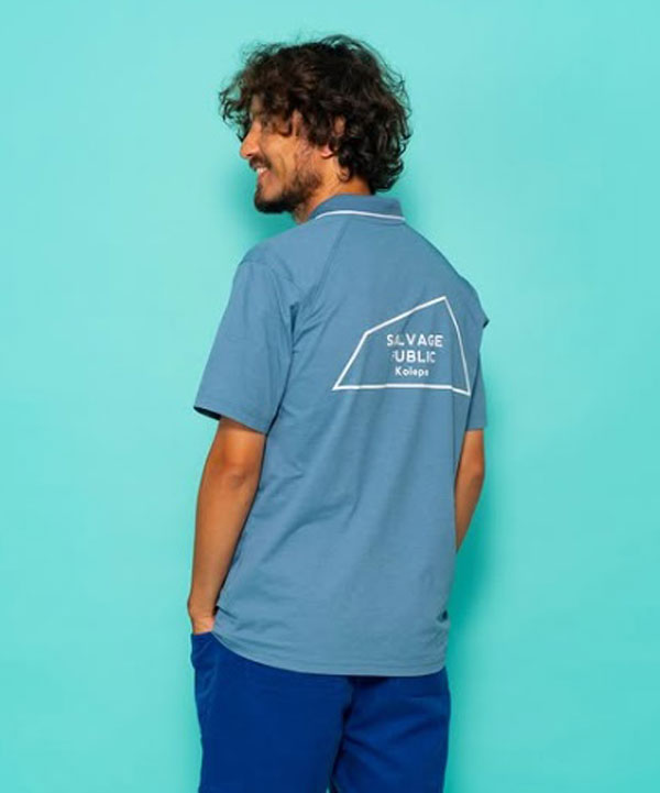 ラッシュガードとしても着用される水陸両用のストレッチ、吸水速乾、UVカット素材を使用したSALVAGE PUBLICらしいポロシャツです。