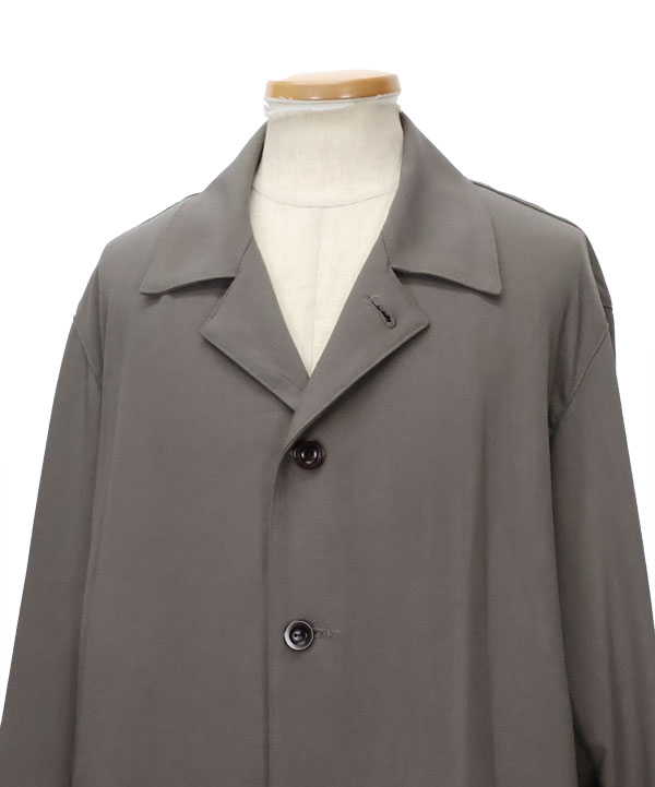 ウールスーパ-140'sをウオッシャブル加工を施し、それで強撚糸を作り、綾組織でギャバジンに仕立てました。80年代、アルマーニを起源とした日本DCブランドも多用した組織で、夏用ウールにモード感をプラスする鉄板組み合わせです。