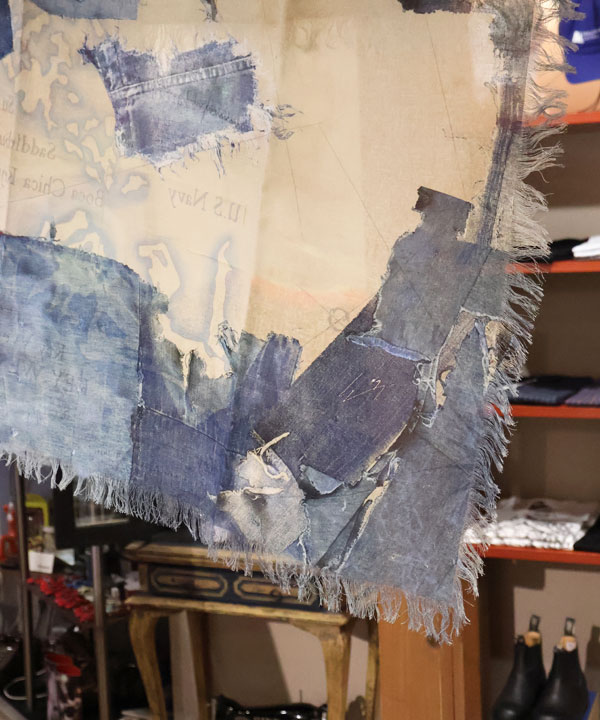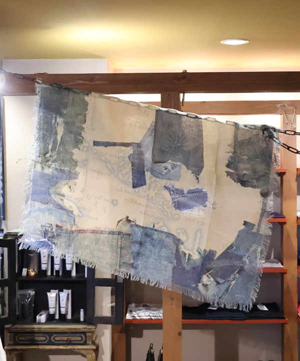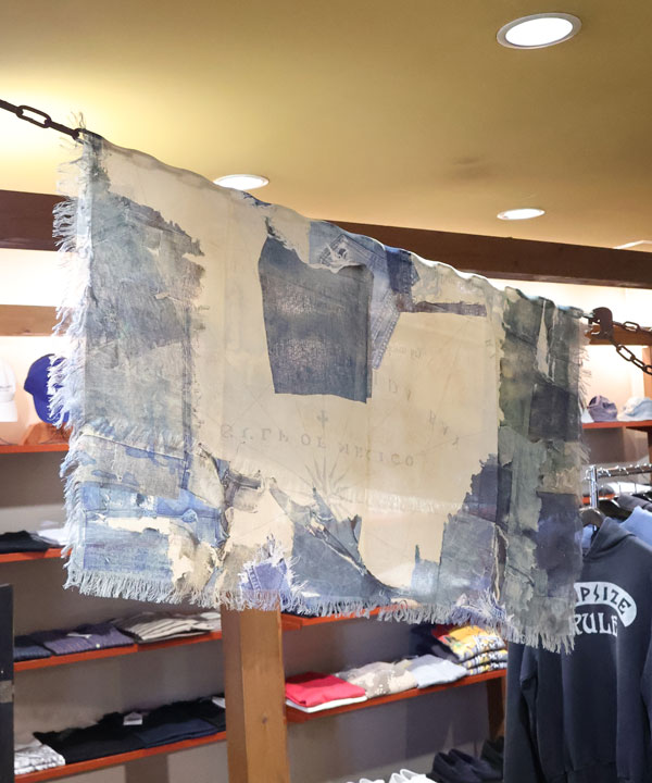 レーヨン フリンジスクエアストール(KAYO HUESO デニムマップ)スクエア型ストールです。そして端はフリンジ始末になっており、ドレープ感のあるレーヨン素材を使用しています。タテ100㎝×ヨコ100センチカラー:ブルー