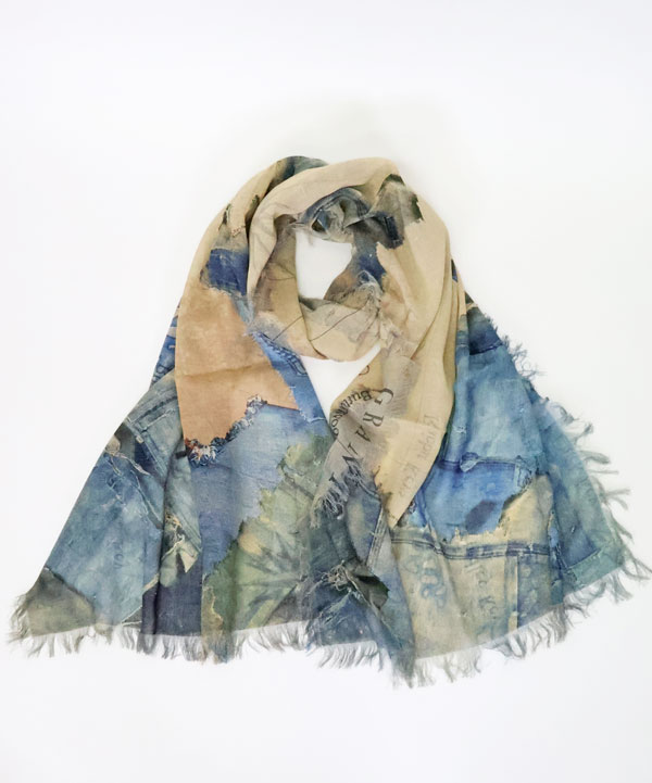 レーヨン フリンジストール(KAYO HUESO デニムマップ)柔らかく肌触りの良いレーヨン素材を使用したストールです。端はフリンジ始末になっていてドレープ感のある雰囲気をお楽しみいただけます。長さ170㎝×幅50㎝ワンサイズ展開カラー:ブルー