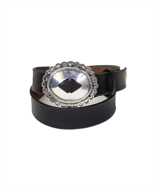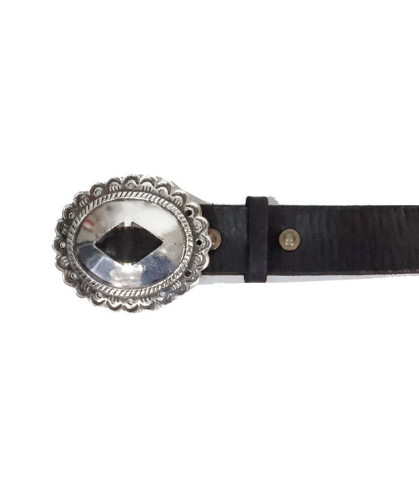 オイルレザー CALAコンチョベルトヴィンテージのような風合いのオイルレザーに、バックルにコッチョを組み合わせたベルトです。Fサイズ:10穴 (68~91センチ)バックル大きさ:8センチ×6.5センチカラー:ブラック
