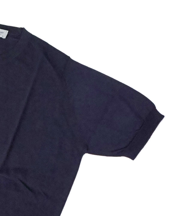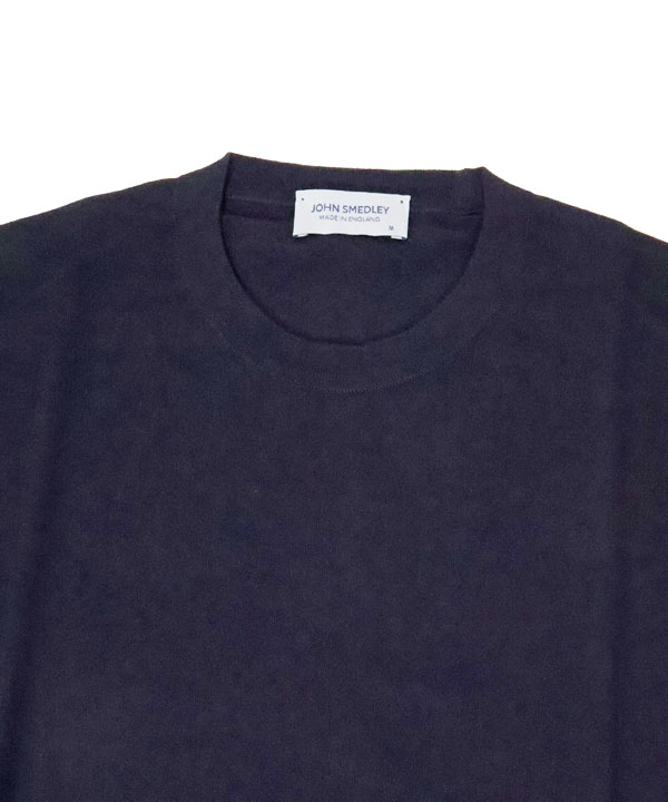 JOHN SMEDLEY’S ANGLO INDIAN GAUZE(AIG)を使用したニットTシャツ。袖口と裾にはリブをあしらい、程よくフィットするデザインで、AIG特有の柔らかい風合いと肌当たりの良さは抜群です。