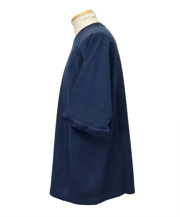 カタチはフリーダムスリーブの半袖デザインとなり袖口にはリブを配することで半袖スウェットのような一枚。
