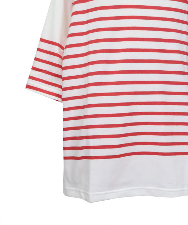 素材には滑らかなコットン天竺を使用するアームボリュームが特徴のオーバーサイズボックスシルエットとなります。