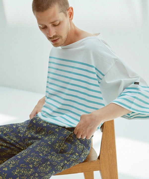 首回りは広めなボートネックデザインのため、タンクトップやクルーネックTEEとのレイヤードもおすすめ。