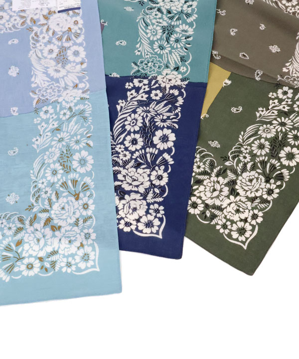 fastcolor セルビッチバンダナ(GARDENパッチワーク)パッチワークデザインになった人気のバンダナです。タテ56㎝×ヨコ54センチ