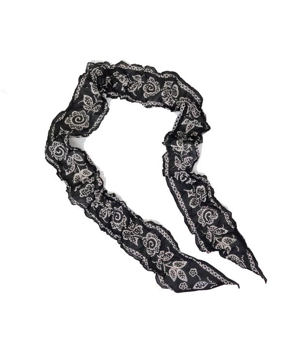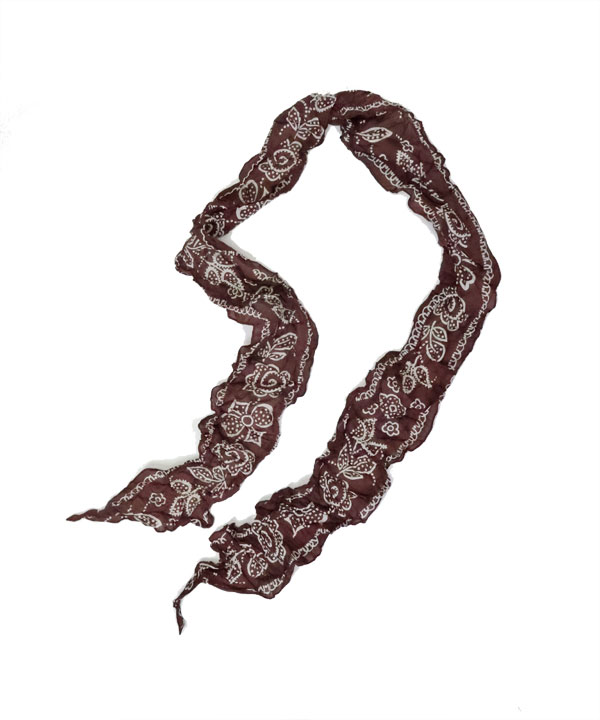 ワッシャーシルク モガスカーフ(エスカルゴフラワー)フラワー柄が程こされた長めのスカーフ。シルクをウォッシュしております。首元のワンポイントにお使いください。ワンサイズ展開長さ:175㎝