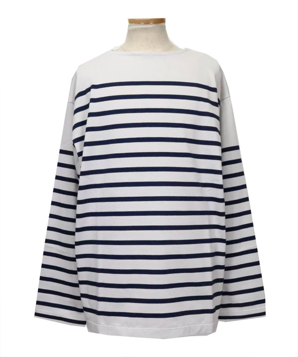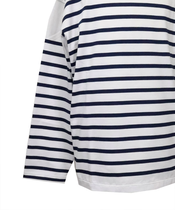 1985年の映画「生意気シャルロット」の中でゲンズブールとジェーンバーキンの実子のシャルロットゲンズブール(14歳)が劇中に着用していたフレンチボーダーTEEをモチーフに作成。80's独特なオーバーサイジング、ハイウエストデニムにタックインが微笑ましい。今の気分のゆったりふんわりとしたシルエットで絶妙なサイズバランスに仕上げられています。肩の無地部分の分量に個性があるパネル柄を忠実に再現しました。
