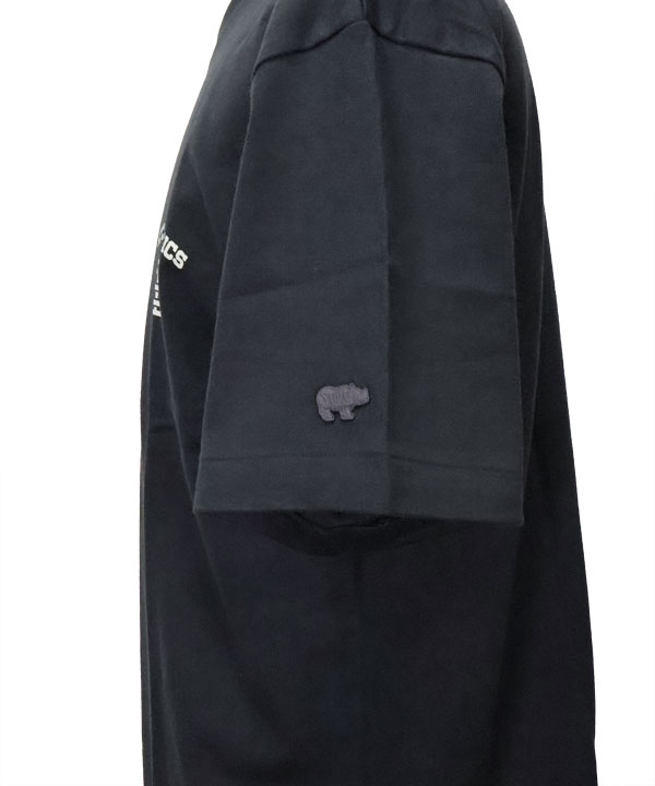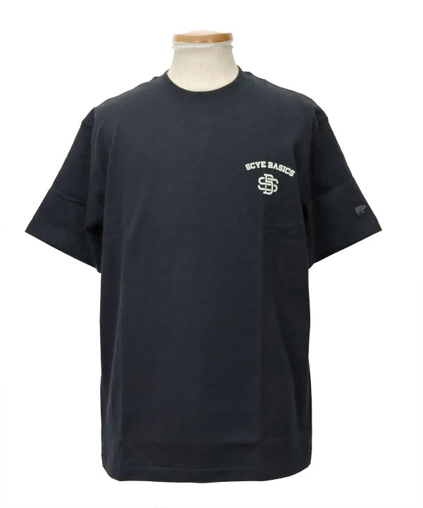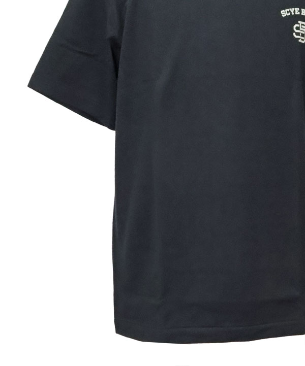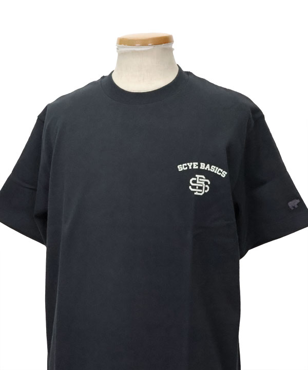 そして左胸には"SCYE BASICS"ロゴのプリントが施され、左袖には"Scye"マークの刺繍ワッペンも付属します。