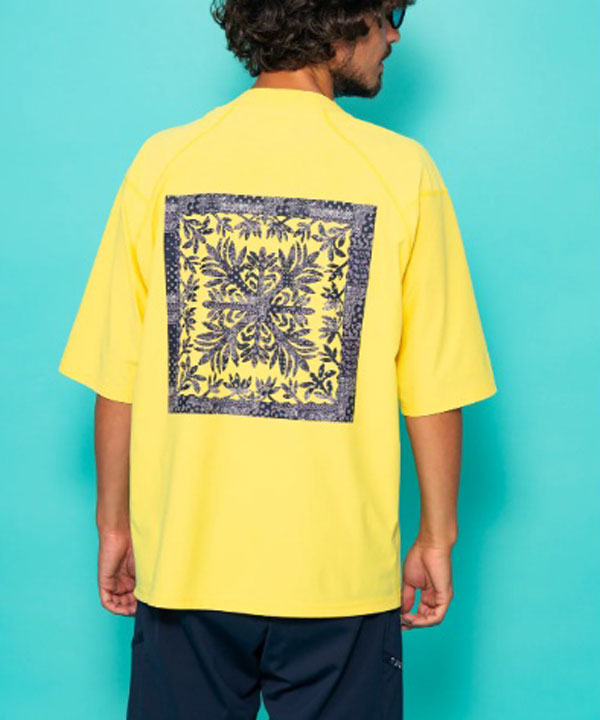 フロント胸中心にはSALVAGE PUBLIC Kolepaブランドスタンプロゴのプリント入り。背中には【Poakalani & co】より提供された「TI LEEF」をペイズリー柄にアレンジしたプリントがインパクトある仕上がりとなっています。