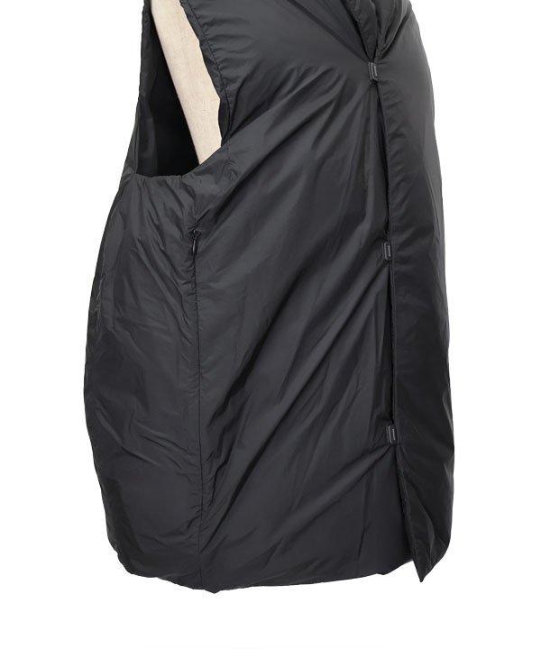 旅行者のために開発されたROOMKEY VESTは貴重品のセキュリティーにフォーカスしたシリーズ。パッカブルシリーズのインナーダウンとして着用することもアウターの上からも羽織ることもできる大きなシルエットになっています。